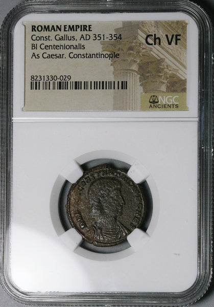 - Choice Very Fine Emperor Constantius Gallus Roman Empire billon Centenionalis or Maiorina coin.