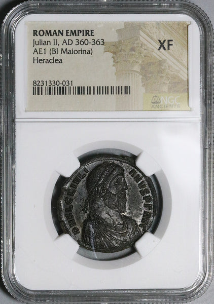 - Extremely Fine Emperor Julian II, known as the Apostate, Roman Empire AE1 maiorina coin.