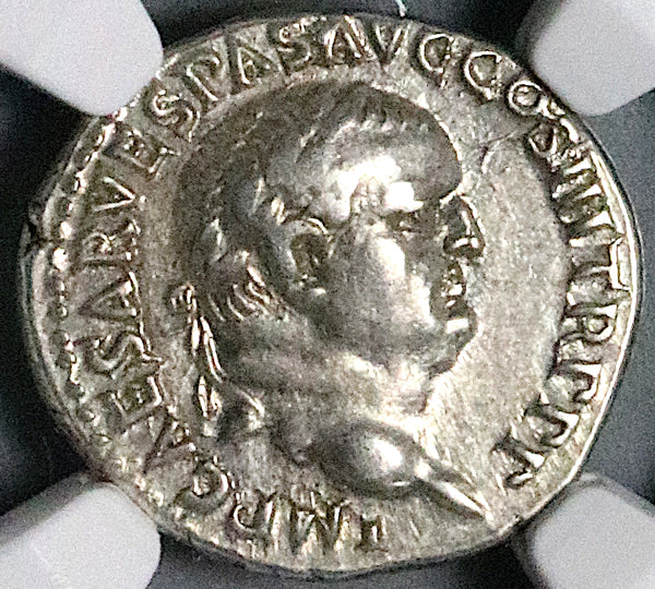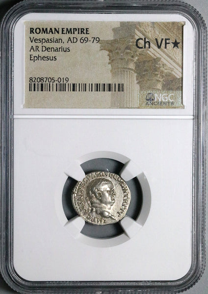 69 NGC Ch VF Star Vespasian Denarius Roman Empire Rare Ephesus Pax Bust (24120503C)