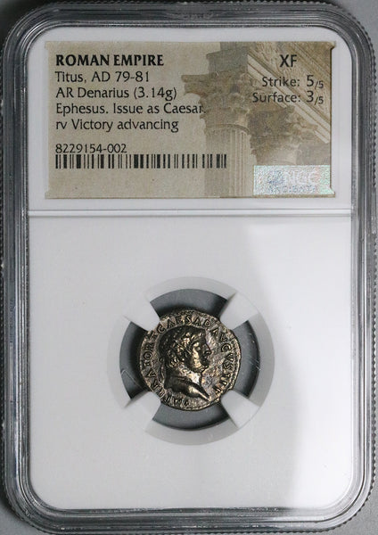 - Extremely Fine Caesar Titus Roman Empire silver denarius coin.