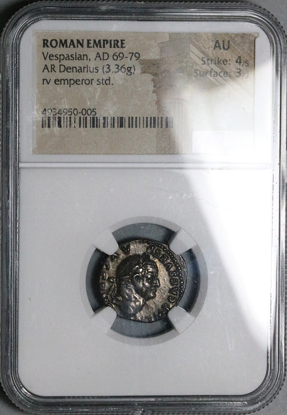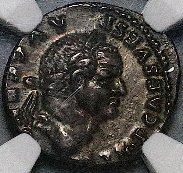 - Almost Uncirculated Emperor Vespasian Roman Empire silver denarius coin.
