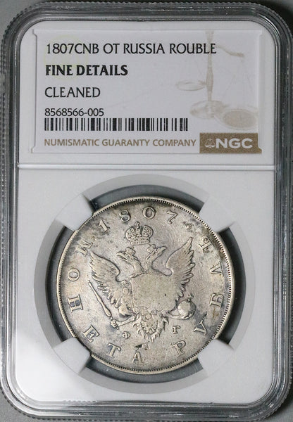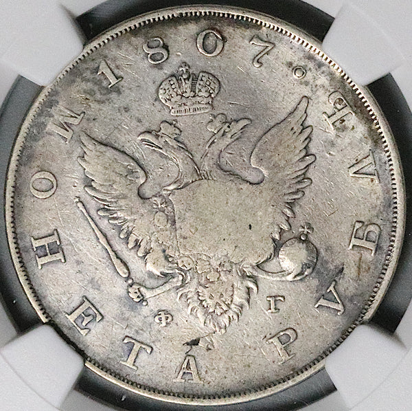 1807 СПБ ФГ NGC F Russia Rouble Alexander I Czar Key Date Silver Coin (26012002C)