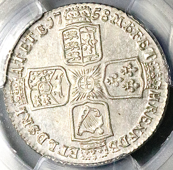 1758 PCGS MS 62 George II Shilling Great Britain England Colonial Silver Coin (25101201C)
