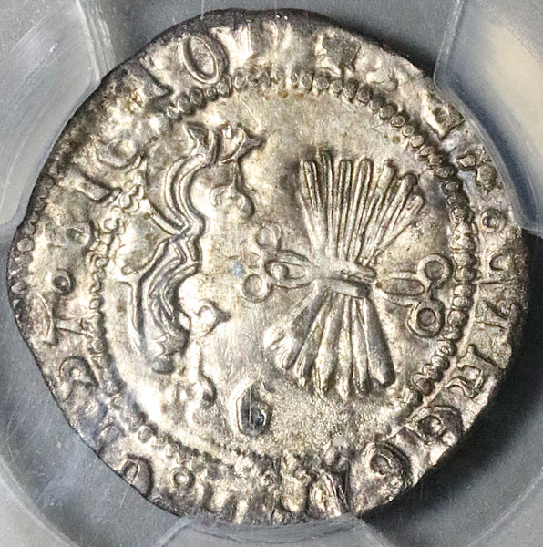 Scarce type struck for Ferdinand and Isabella from 1474 to 1504 at the Granada (mint mark G).