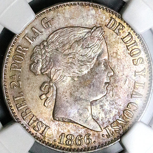 - Scarce date struck for Queen Isabel 2 at the Madrid Mint (mint mark 6 point star).