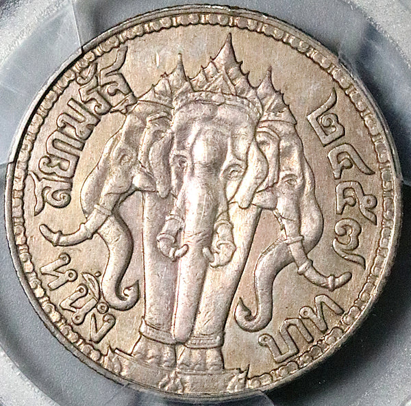 1921 NGC MS 63 Thailand 1/2 Baht Elephants BE2464 Rama VI Silver Coin (20091602C)