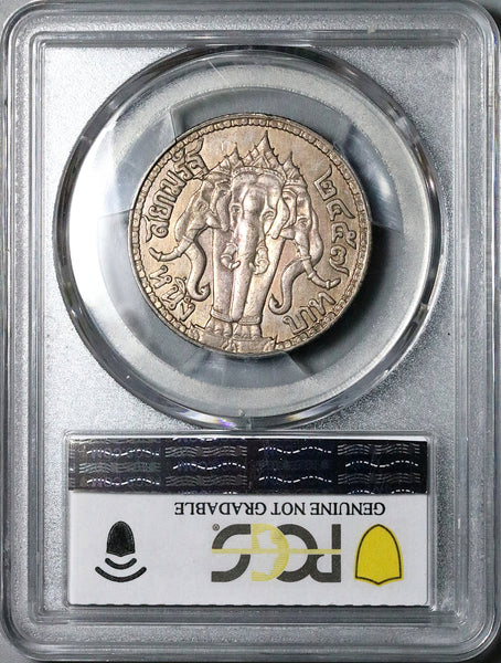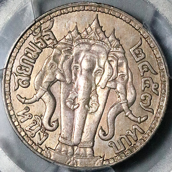 1921 NGC AU Thailand 1 Baht BE257 Elephants Rama VI Key Date Silver Coin (24100604C)
