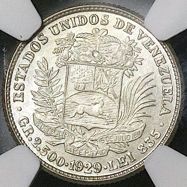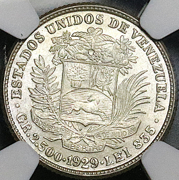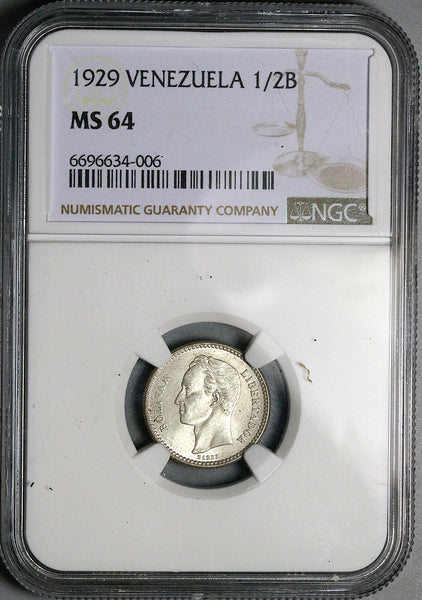 1929 NGC MS 64 Venezuela 1/2 Bolivar 50 Centimos Horse Silver Coin (25052902C)