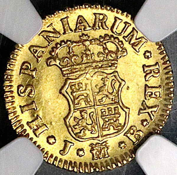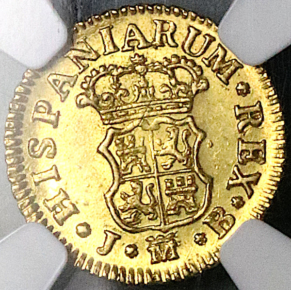 1770 NGC AU 58 Spain 1/2 Escudo Charles III Madrid Gold Coin POP 1/3 (24070203C)