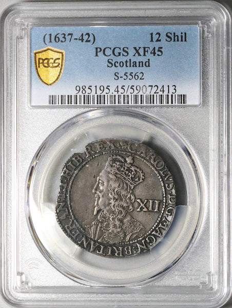 1637 PCGS XF 45 Scotland Charles I 12 Shillings Silver Coin POP 1/0 (25070301C)