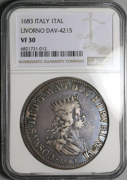 1683 NGC VF 30 Livorno Tallero Tollero Cosimo Medici Tuscany Crown Coin POP 1/0 (24031101D)