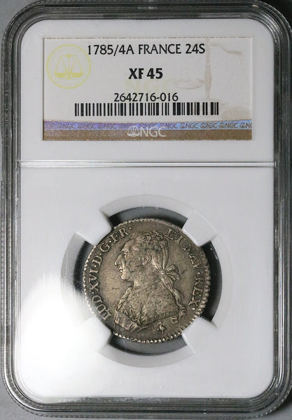 1785/4-A NGC XF 45 France 24 Sols Louis XVI 1/5 Ecu Rare Paris Silver Coin POP 1/0 (25111902C)
