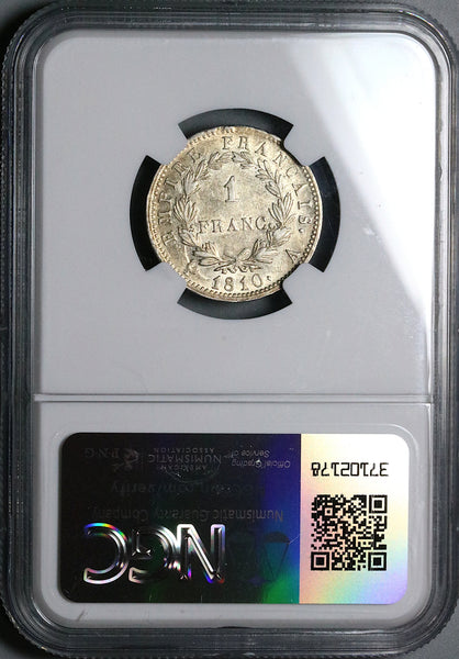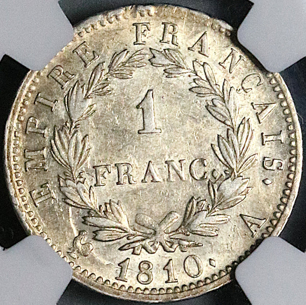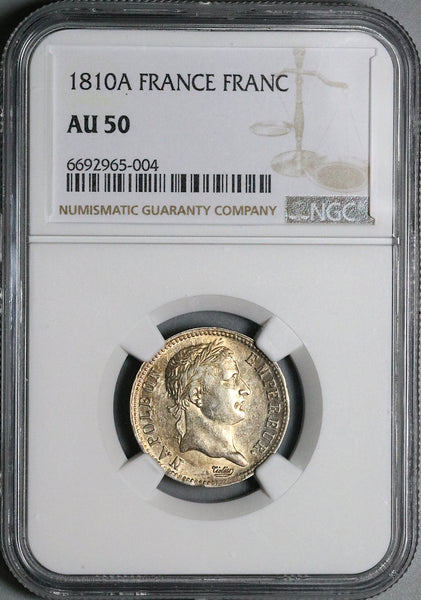 1810-A NGC AU 50 France Napoleon 1 Franc Paris Mint Silver Coin POP 1/5 (24072801C)