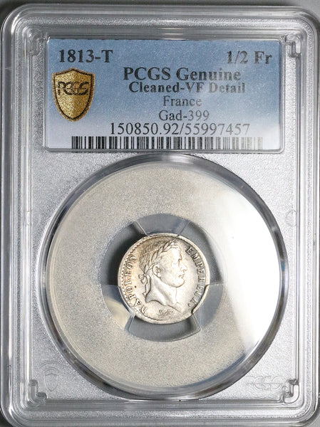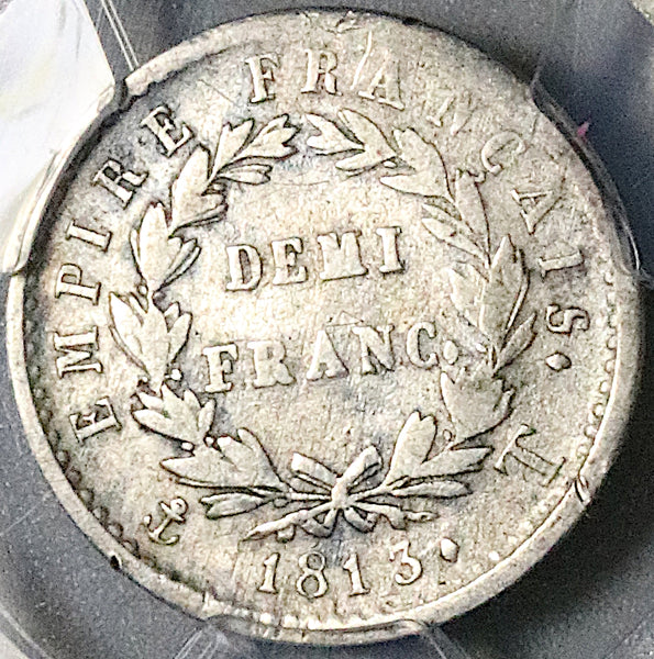 1813-T PCGS VF France 1/2 Demi Franc Napoleon I Nantes Rare 53k Silver Coin (26012001C)