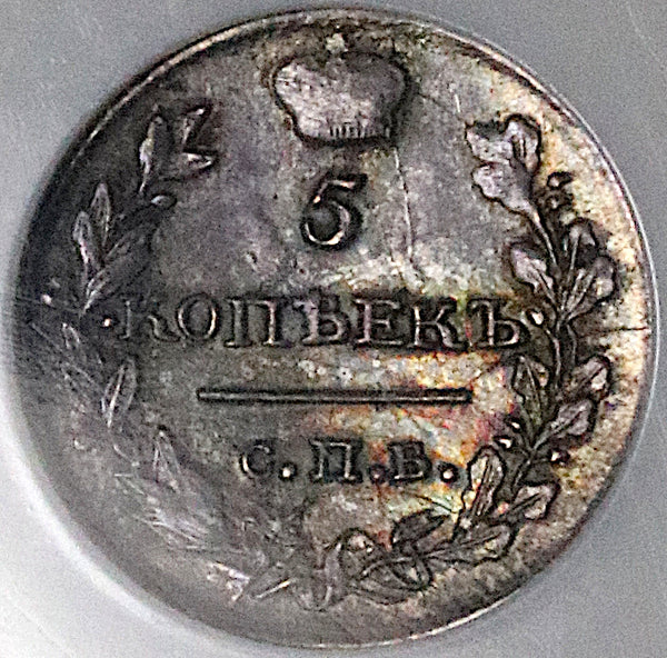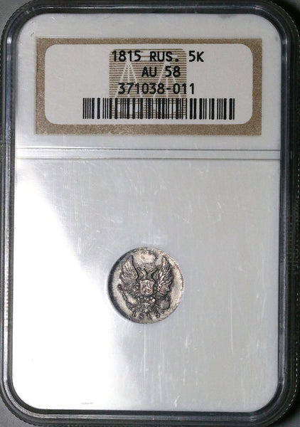 1815 NGC AU 58 Russia 5 Kopeks Czar Alexander I St. Petersburg Silver Coin (25120901C)