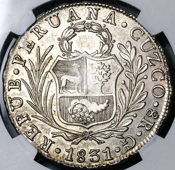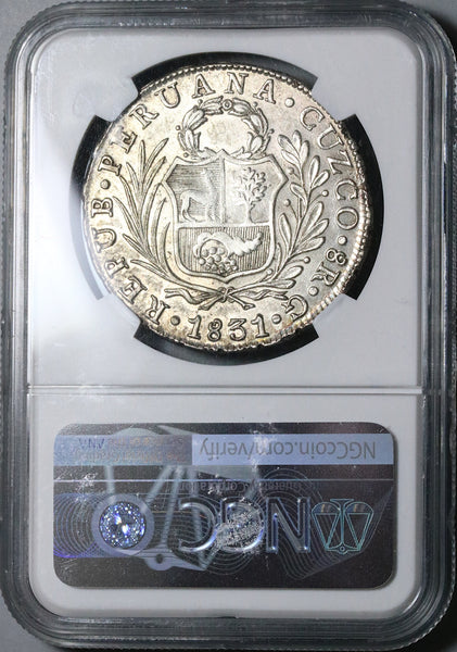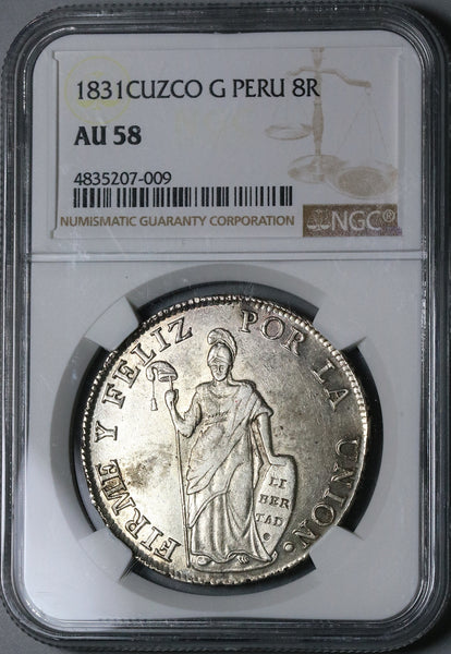 1831-C NGC AU 58 Peru Cuzco 8 Reales Standing Liberty Silver Coin (23060602C)