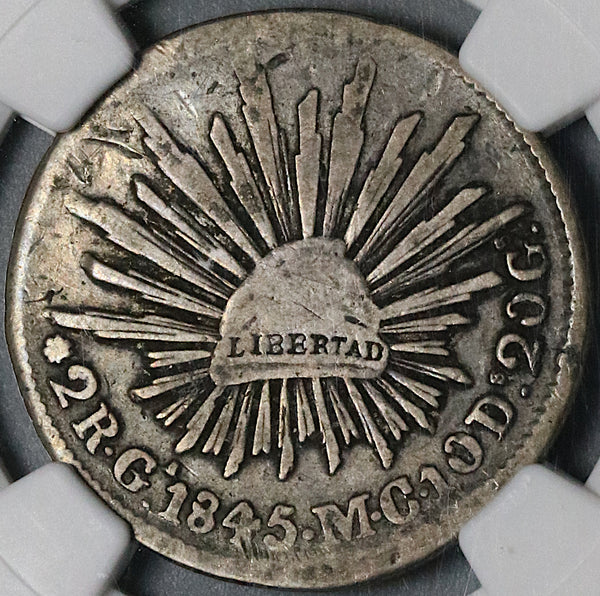 1845/4-Ga NGC Fine Mexico 2 Reales Guadalajara Rare Coin POP 1/0 (24070804C)