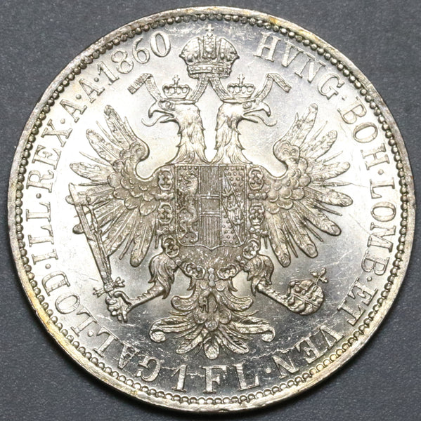 1860-A Austria 1 Florin BU Franz Joseph Vienna Mint Silver Coin (23121210R)
