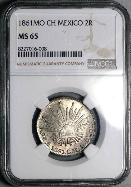 1861-Mo NGC MS 65 Mexico 2 Reales Gem Cap Rays Silver Coin (25110201C)