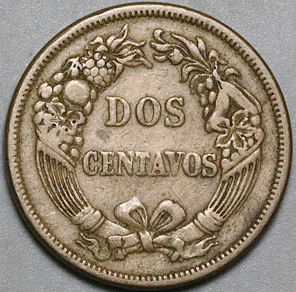 1863 Peru Dos 2 Centavos VF Radiant Sun Coin (24101401R)