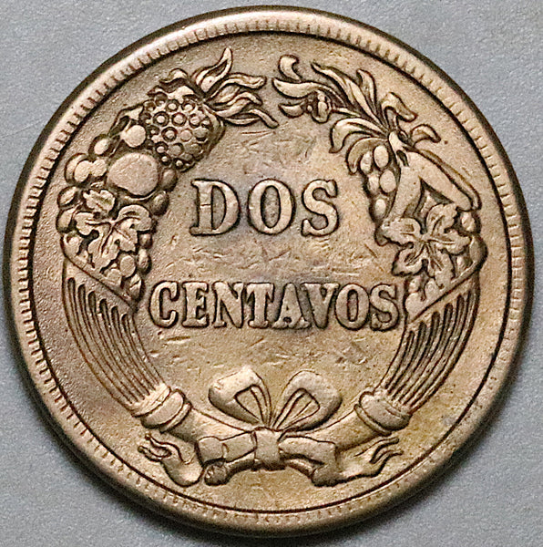 Very Fine Peru 2 centavos coin.
