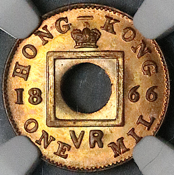 1866 NGC MS 66 RB Hong Kong 1 Mil Victoria Britain Empire Gem Coin (25072301C)