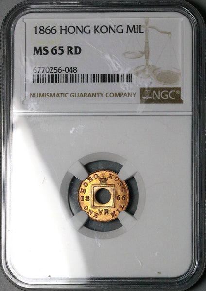 1866 NGC MS 65 RD Hong Kong 1 Mil Victoria Britain Empire RED Gem Coin (25101701C)