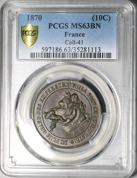1870 PCGS MS 63 France Napoleon III Pig Vampire Satire Rare 10 Centimes POP 2/0 (25111901C)