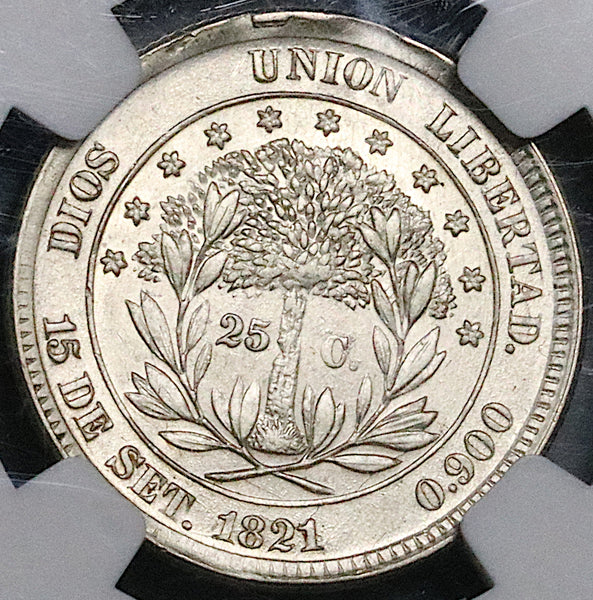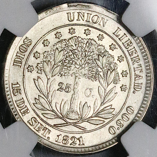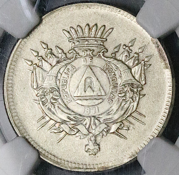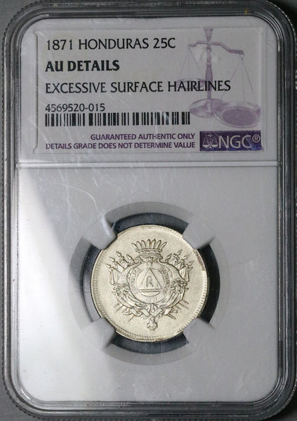 - Almost Uncirculated Honduras silver 25 centavos coin.