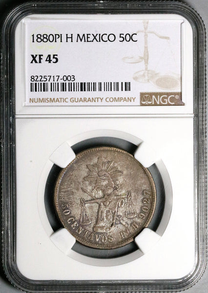 1880-Pi NGC XF 45 Mexico 50 Centavos Balance Scale Rare Coin POP 1/1 (25110203C)