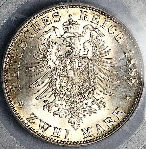1888-A PCGS MS 65 Prussia 2 Mark Friedrich III Germany State GEM Silver Coin (25101201D)