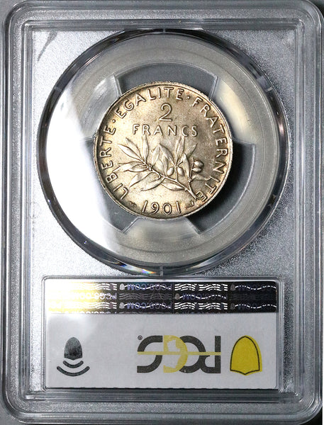 1901 NGC MS 62 France 2 Francs Semeuse Sower Silver Coin (23081001C)
