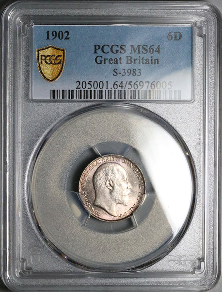 1902 PCGS MS 64 Edward VII 6 Pence Great Britain Sterling Silver Coin (25051402C)