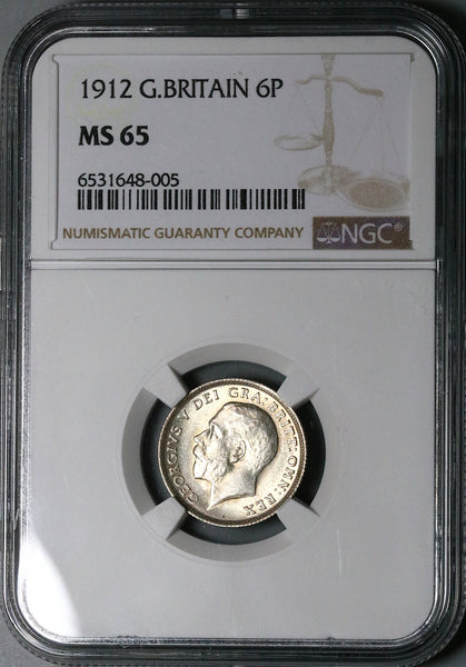 1912 NGC MS 65 George V 6 Pence Great Britain Sterling Silver Coin (23082903C)