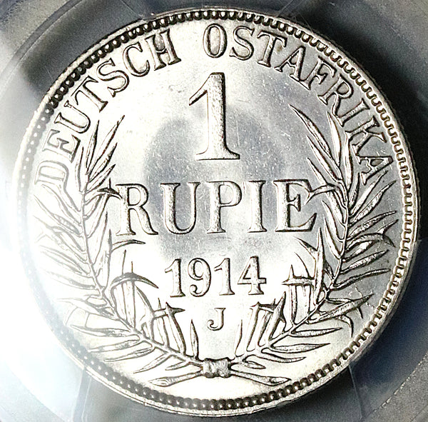 1914-J PCGS MS 61 German East Africa 1 Rupie Rare Hamburg Mint Silver Coin (25101804C)