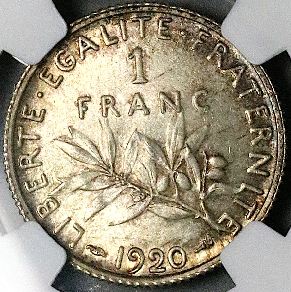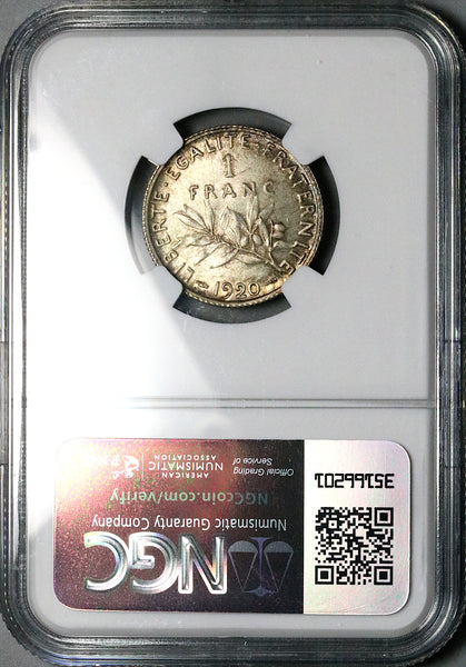 1920 NGC MS 65 France 1 Franc Sower Mint State Last Year Silver Coin (26022102C)