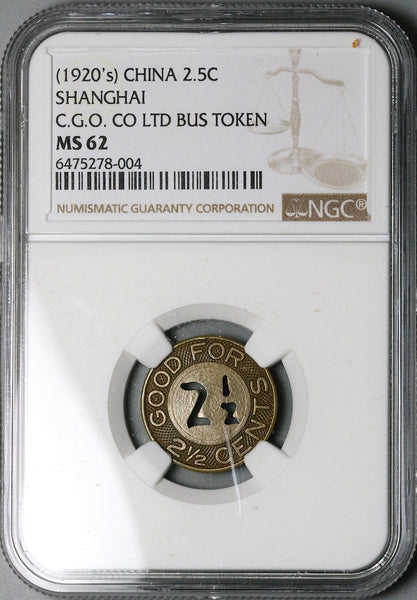 1920s NGC MS 62 Shanghai China 2.5 cents Omnibus Token Bus Coin (24021504C)