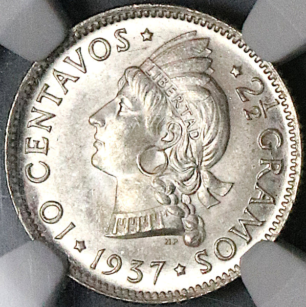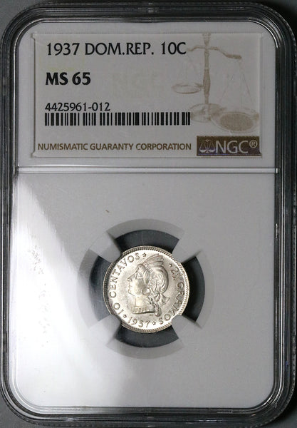 1937 NGC MS 65 Dominican Republic 10 Centavos Gem Silver Coin (17061801D)