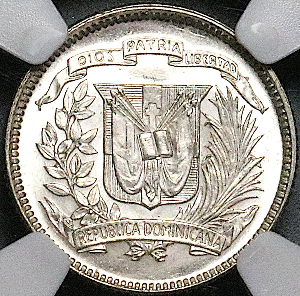 1959 NGC MS 64+ Dominican Republic 1/2 Medio Peso 50c Silver Coin (23100402C)