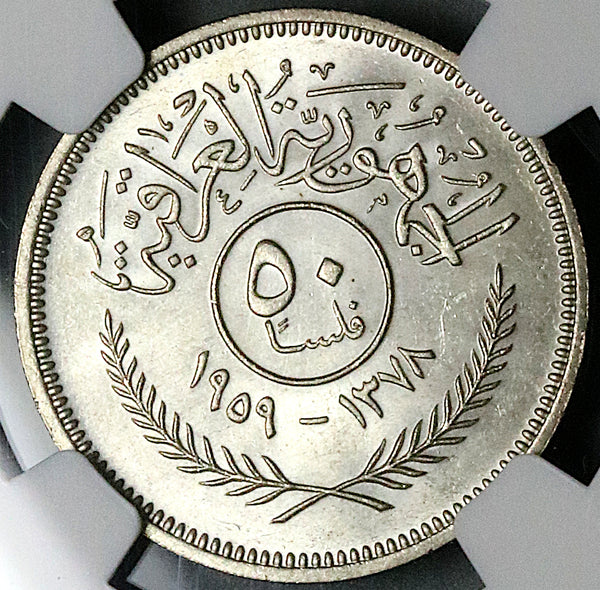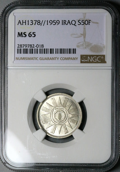 1959 NGC MS 65 Iraq 50 Fils Republic AH1378 Silver Coin (24020203C)