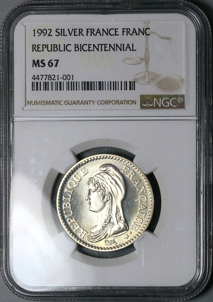 1992 NGC MS 67 France 1 Franc Republic Bicentennial Silver Coin POP 2/4 (25122001C)