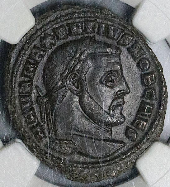 - Almost Uncirculated Maxentius, as Caesar, Roman Empire billon nummus or follis coin.