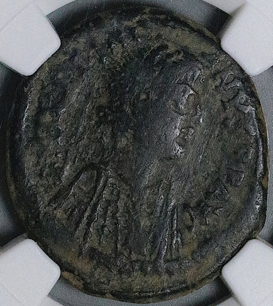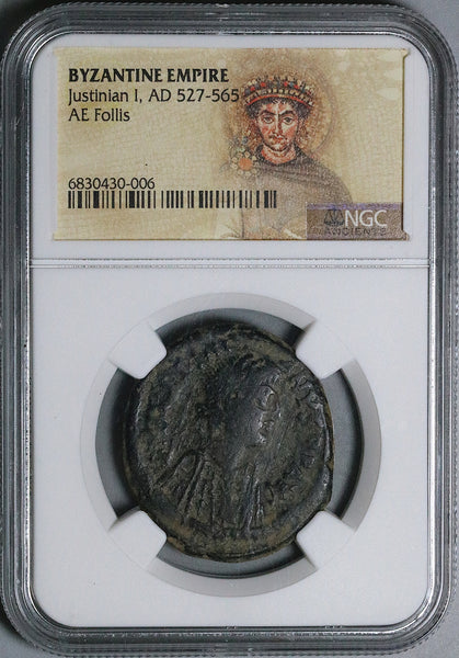 Emperor Justinian I (527-565 CE) Byzantine Empire large copper follis coin.