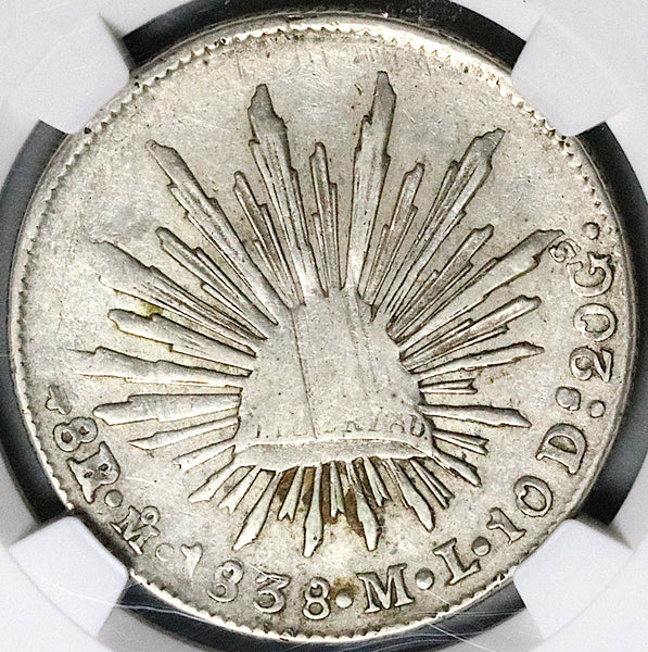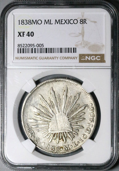 1838-Mo ML NGC XF 40 Mexico 8 Reales Cap Rays Scarce Silver Coin (25092701C)