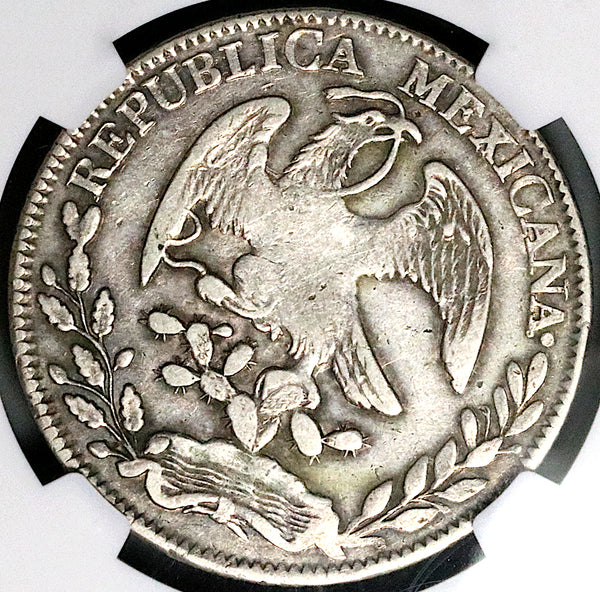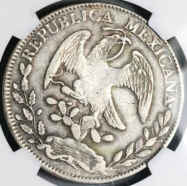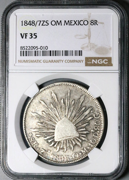 1848/7-Zs NGC VF 35 Mexico 8 Reales Cap Rays Rare Zacatecas Mint Overdate Silver Coin (25092702C)