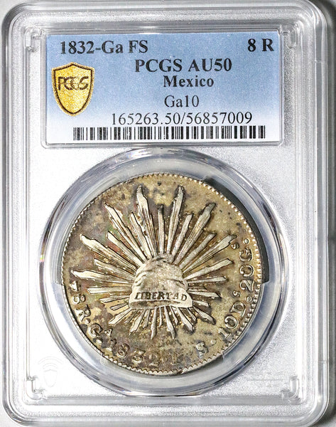1832-Ga PCGS AU 50 Mexico 8 Reales Guadalajara Rare Silver Coin POP 2/1 (25120201D)